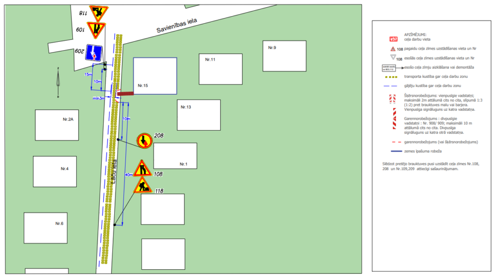 Minētajos posmos tiek izbūvēts gāzesvads. Griezes ielā pret īpašumu Nr.12A būs slēgta viena virziena braukšanas josla, divvirzienu satiksmi organizējot ar ceļa zīmēm.