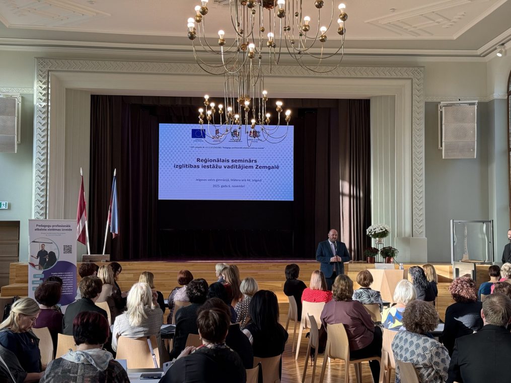 Dienas pirmajā daļā Jelgavas Valsts ģimnāzijā notika Izglītības un zinātnes ministrijas organizētais Zemgales reģionālais seminārs.