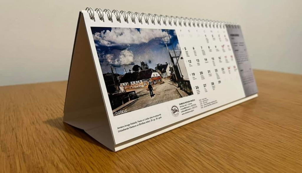 Iznācis Dobeles novada muzeja 2024. gada kalendārs. “Tā izdošana ir tradīcija, kurā katru gadu cenšamies atspoguļot muzeja krājuma vērtības. Katru gadu uzmanība veltīta citām krājuma vienībām – pirms pāris gadiem cilvēkus katru mēnesi priecēja krājuma gleznu kolekcijas reprodukcijas, kurās attēloti dažādi Dobeles skati. Pirms gada iepazīstinājām ar mūsu arheoloģiskajām vērtībām – skaistu fotosesiju un iekļaušanu kalendāra lapās saņēma mūsu novadā atrastās zemgaļu rotas. Šogad kārta pienākusi pastkaršu kolekcijai, kas aptver skaistākos skatus Dobeles, Auces un Tērvetes pusēs pirms aptuveni 100 gadiem. Lai piešķirtu jaunu, interesantu šķautni, pastkartes ir mākslīgā intelekta izkrāsotas,” informē Dobeles novada muzeja speciāliste Undīne Krūze.
