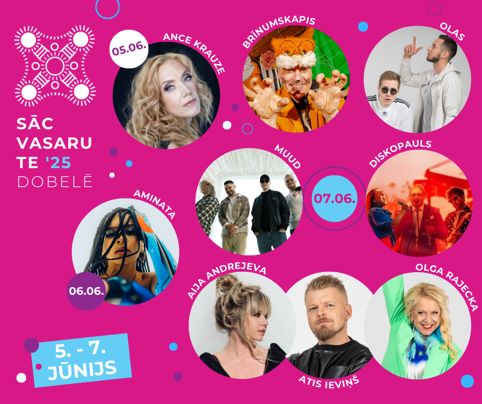Izziņoti Dobeles pilsētas festivāla “Sāc vasaru te!25” mūziķi, kas trijās svētku dienās jūnija sākumā priecēs pilsētas viesus un iedzīvotājus, ziņo festivāla organizatori.