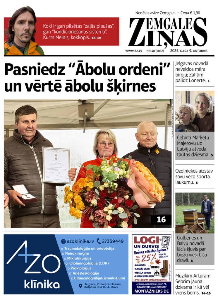 Jaunākajā laikraksta “Zemgales Ziņas” numurā (09.10.2025) lasiet: *Žurnālista piezīmes no Ukrainas: Ne diennakti bez darba. *Čehieti uz Latviju atveda tautas dziesma. *Rolands Krevics: “Lācis nāk ēst medu gandrīz katru nakti jau nedēļas garumā.” *Mūziķim Artūram Sebrim jauna dziesma ir kā vēl viens bērns. *Dobelē pasniedz “Ābolu ordeni” un vērtē ābolu šķirnes.