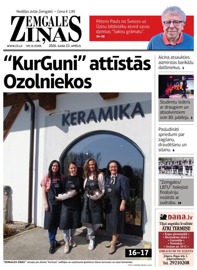 Jaunākajā laikraksta “Zemgales Ziņas” numurā (23.04.2026) lasiet: *Pēteris Pauls no Šveices uz Ūziņu bibliotēku atved savas dzimtas “Sakņu grāmatu”. *“KurGuni” attīstās Ozolniekos. *Aicina atsaukties aizmirstos barikāžu dalībniekus. *Pasludināti spriedumi par zagšanu, draudēšanu un sišanu.
