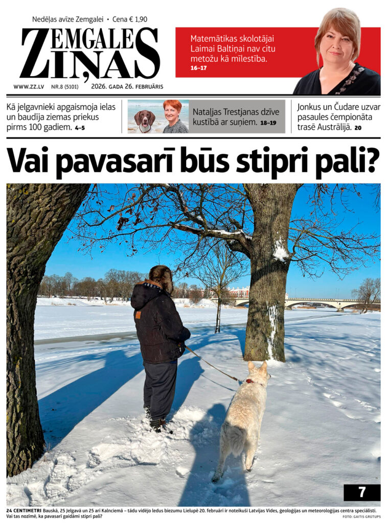 Jaunākajā laikraksta “Zemgales Ziņas” numurā (26.02.2026) lasiet: *Matemātikas skolotājai Laimai Baltiņai nav citu metožu kā mīlestība. *Kā jelgavnieki apgaismoja ielas un baudīja ziemas priekus pirms 100 gadiem. *Dzīve kustībā ar suņiem. *Saruna ar mūziķi Ralfu Mākuli. *Jelgavas Goda pilsoni Elzu Radziņu pieminot.