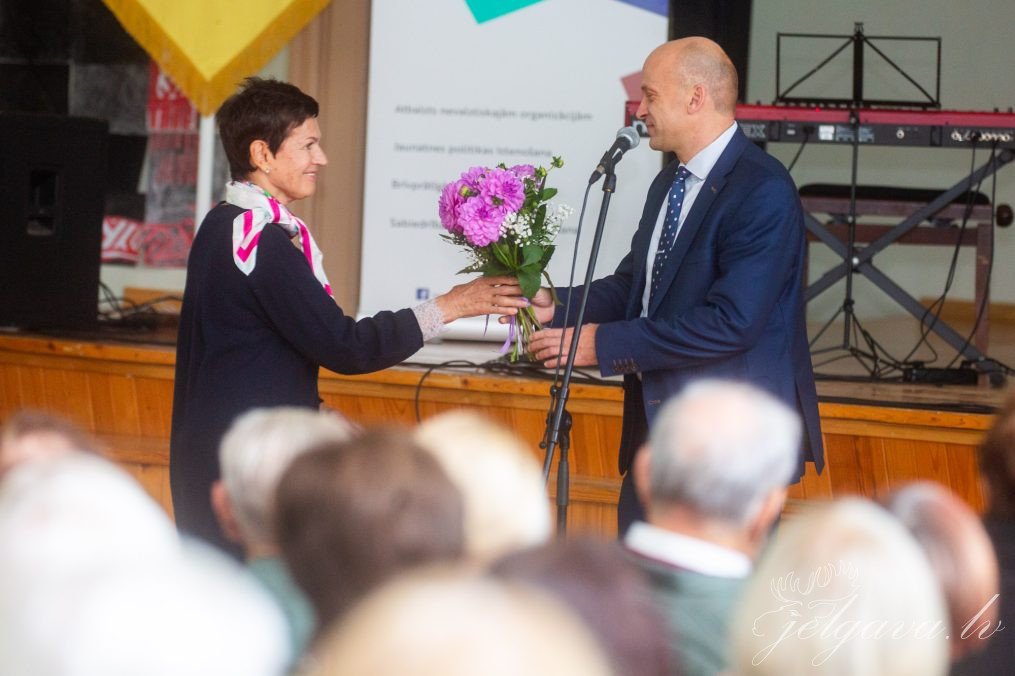Seniorus uzrunāja Jelgavas domes priekšsēdētāja vietnieks Aigars Rublis, Jelgavas pašvaldības iestādes “Sabiedriskais centrs” vadītāja Egita Veinberga un Jelgavas Senioru biedrības valdes priekšsēdētāja Ilga Antuža.