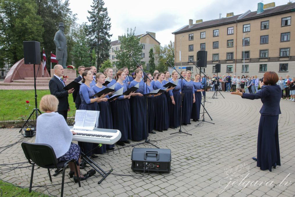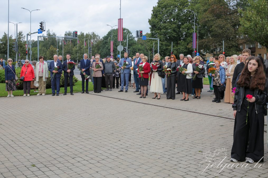 Ziedus pie pieminekļa svētku reizē nolika arī pilsētas pašvaldības iestāžu un kapitālsabiedrību vadītāji, Jelgavas Latviešu biedrības pārstāvji un jelgavnieki.