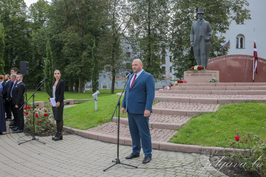 Piemiņas brīdī pie Čakstes pieminekļa uzrunu teica un ziedus nolika Jelgavas domes priekšsēdētājs Mārtiņš Daģis, uzrunā uzsverot, ka Jānis Čakste bija viens no demokrātiskas Latvijas izveidošanas pamatlicējiem un vienmēr būs piemērs ikvienam, lai mēs Latviju varētu darīt labāku un stiprāku.