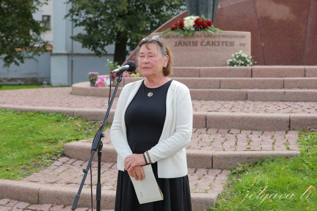 Klātesošos uzrunāja arī Jelgavas Latviešu biedrības valdes priekšsēdētāja vietniece Santa Logina, atzīstot, ka ir liels gods tālāk nest tās vērtības, kas ir bijušas svarīgas arī Jānim Čakstem, vienam no dižākajiem sabiedriskās un politiskās dzīves darbiniekiem.