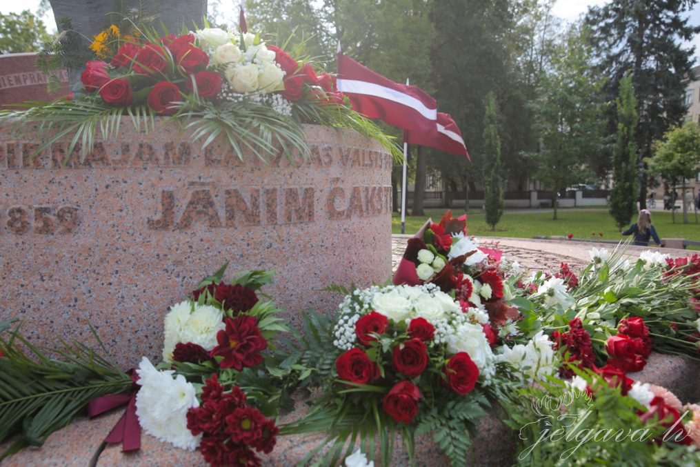 Svētdien, 14. septembrī, apritēja 166 gadi, kopš dzimis Latvijas pirmais Valsts prezidents Jānis Čakste. Godinot valstsvīru, pilsētas vadība un jelgavnieki nolika ziedus pie Čakstes pieminekļa, informē pašvaldība.