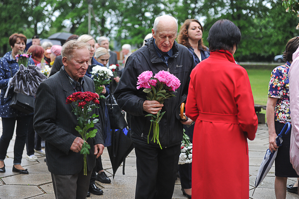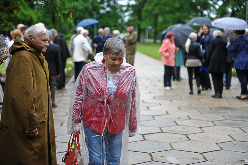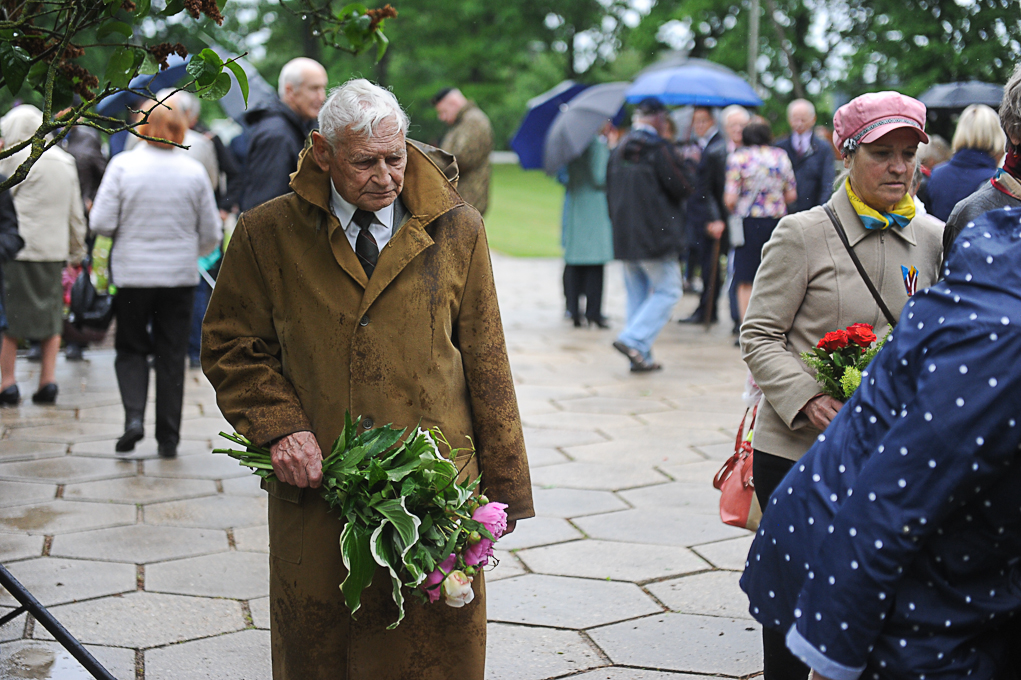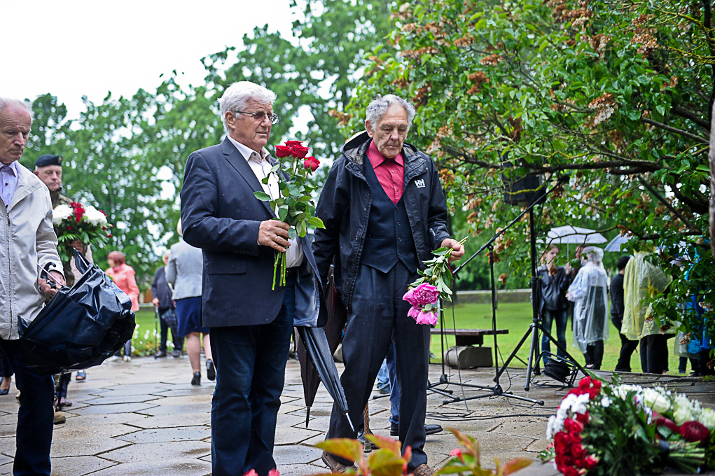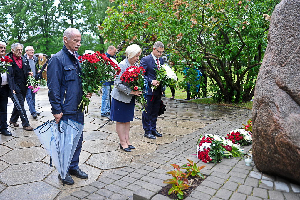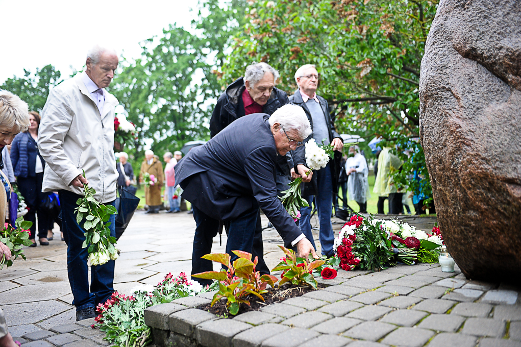 Piemiņas brīdī piedalījās arī Nacionālās pretošanās kustības dalībniece Irēna Kalniņa, kas 1949. gadā tika tiesāta un izcieta sodu par nacionālo partizānu atbalstīšanu. Viņa atcerējās, ka 1989. gadā, iekārtojot Svētbirzi, “staburadzieši” pirms 14. jūnija piemiņas sarīkojuma pļāvuši zāli. Agrāk piemiņas memoriāla vietā bijusi vienkārša pļava. I. Kalniņa nevar pieņemt to, ka pasaule tik ilgi nevar apturēt Krievijas agresiju Ukrainā, kur cieš nevainīgi cilvēki.
