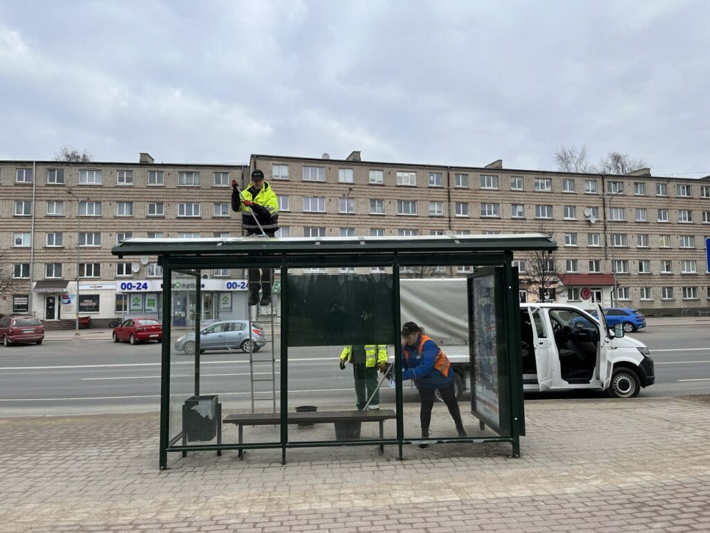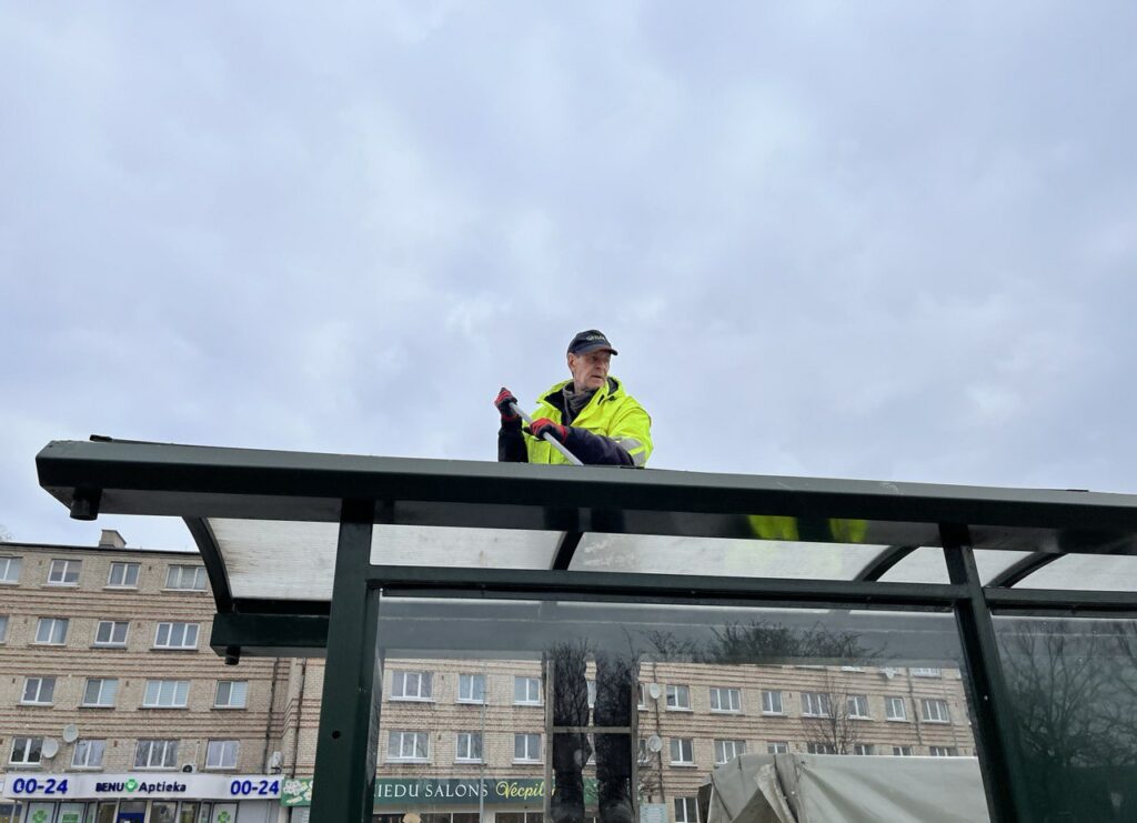 “Nomazgājam jumtu, stiklus, soliņus – aizvācam visus netīrumus un putekļus. Nopulējam, lai viss spīd un priecē acis. Pateicoties tam, ka pieturas esam mazgājuši daudzas reizes, mums tas sanāk diezgan ātri,” stāsta Viktors.