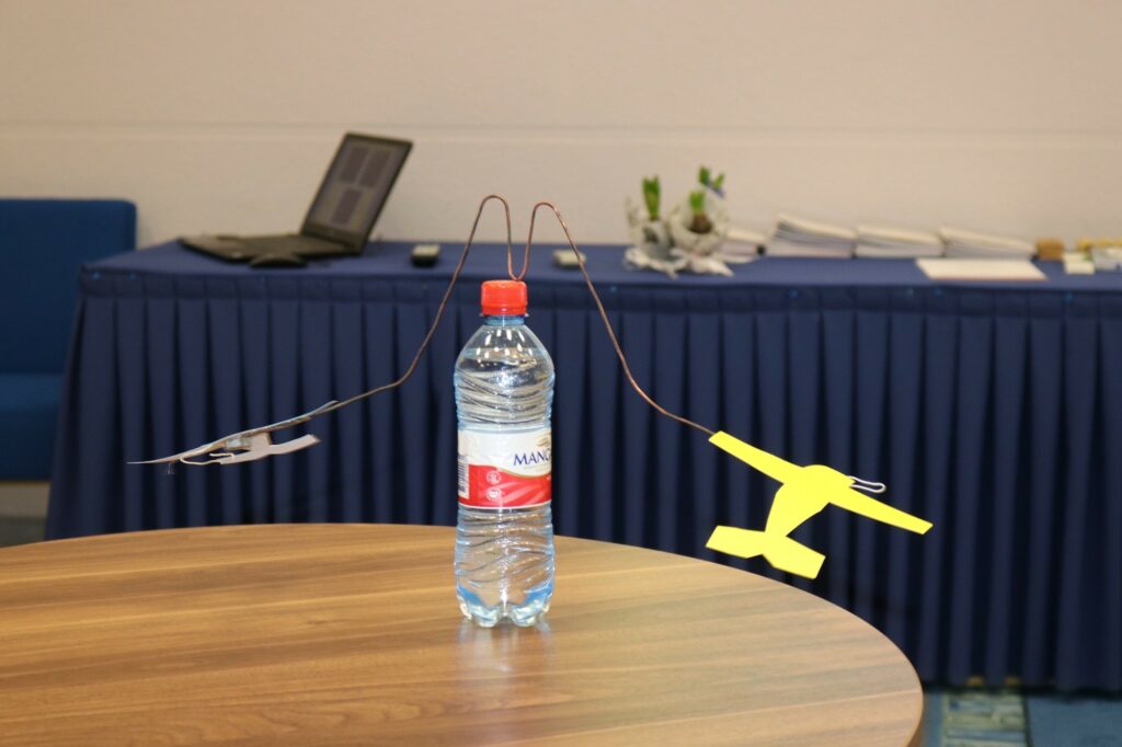 Pirmo vietu ieguva Andrejs Fiļjašenkovs no Jelgavas pamatskolas “Valdeka”– attīstības centra 6. klases, viņa darbs “Smaguma centrs”. Andrejs demonstrēja, kā var noteikt smaguma centra atrašanos dažādām figūrām. Interesanti, ka tāds ir arī Latvijai. Par pamatu ņemot Latvijas karti un attēlojot to papīra formātā, ir iespējams izrēķināt smaguma centru kā jebkurai figūrai. Šo faktu pārbaudīja arī pirmās vietas ieguvējs un, kā izrādās, tas atrodas Ogres novadā.
