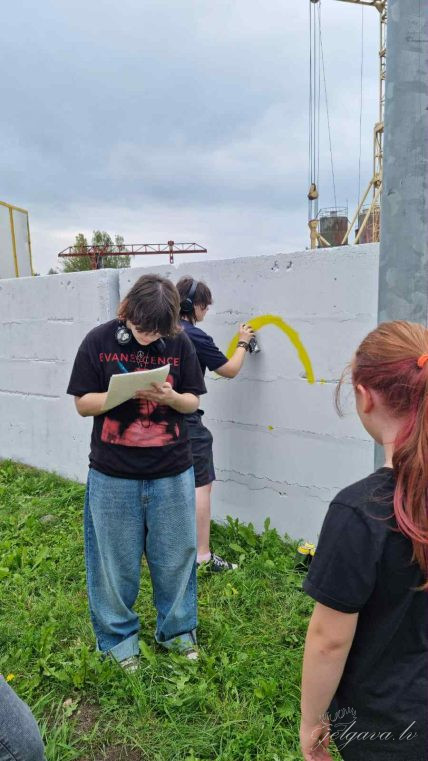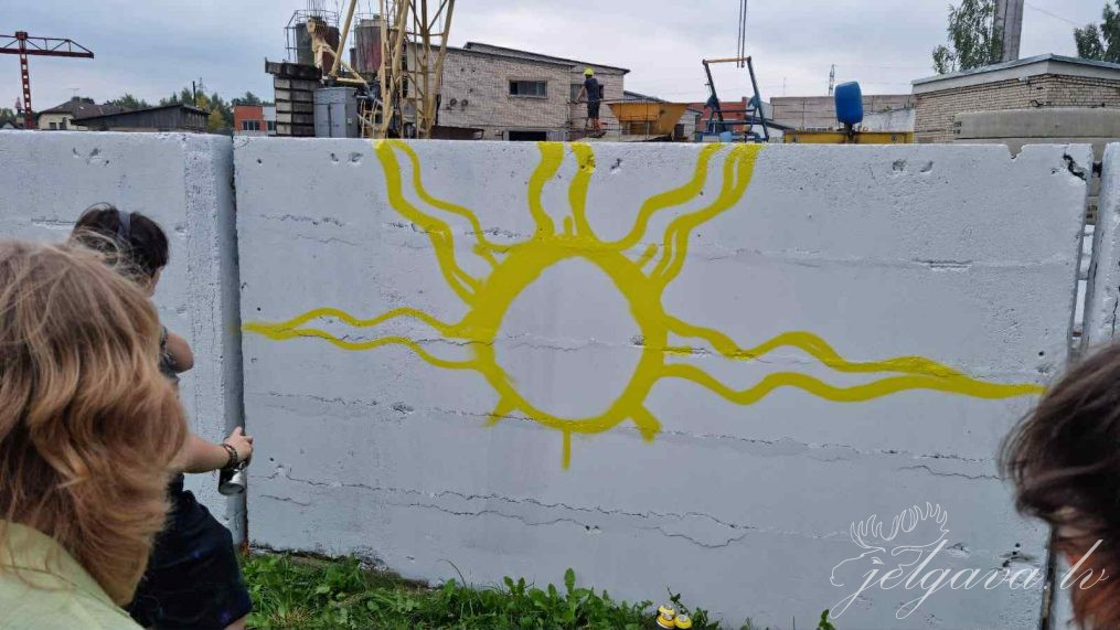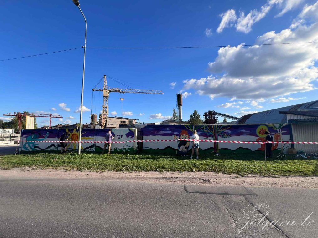Plānots, ka jaunieši darbu pie sienas gleznojuma pabeigts sestdien, lai svētdien, 7. septembrī, pulksten 14 svinētu projekta noslēgumu un ļautu savu veikumu novērtēt arī jelgavniekiem.