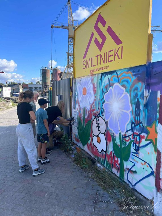 Jau no trešdienas jaunieši pēcpusdienās tiekas Tērvetes ielā, lai radītu vienotu sienas gleznojumu uz aptuveni 12 metrus garas betona sienas, ko jauniešu mākslai atvēlējis uzņēmums SIA “Smiltnieki”.