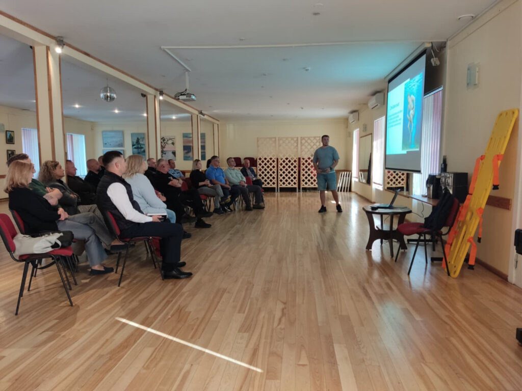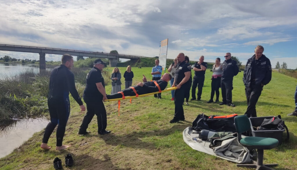 Profesionāla glābēja vadībā tika uzsvērti ūdens akvatorijas riski: atvari, zemūdens avoti, sanesumi, straumes, kā arī glābšanas aprīkojuma un paņēmienu pielietojums. Dalībnieki apguva arī iedzīvotāju evakuācijas organizēšanu un efektīvu komunikāciju krīzes situācijās.