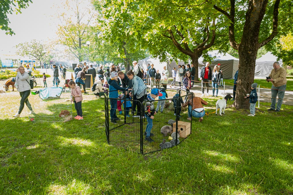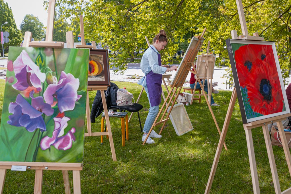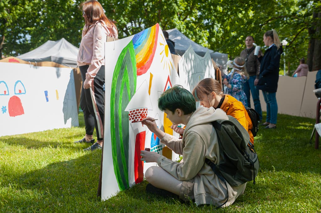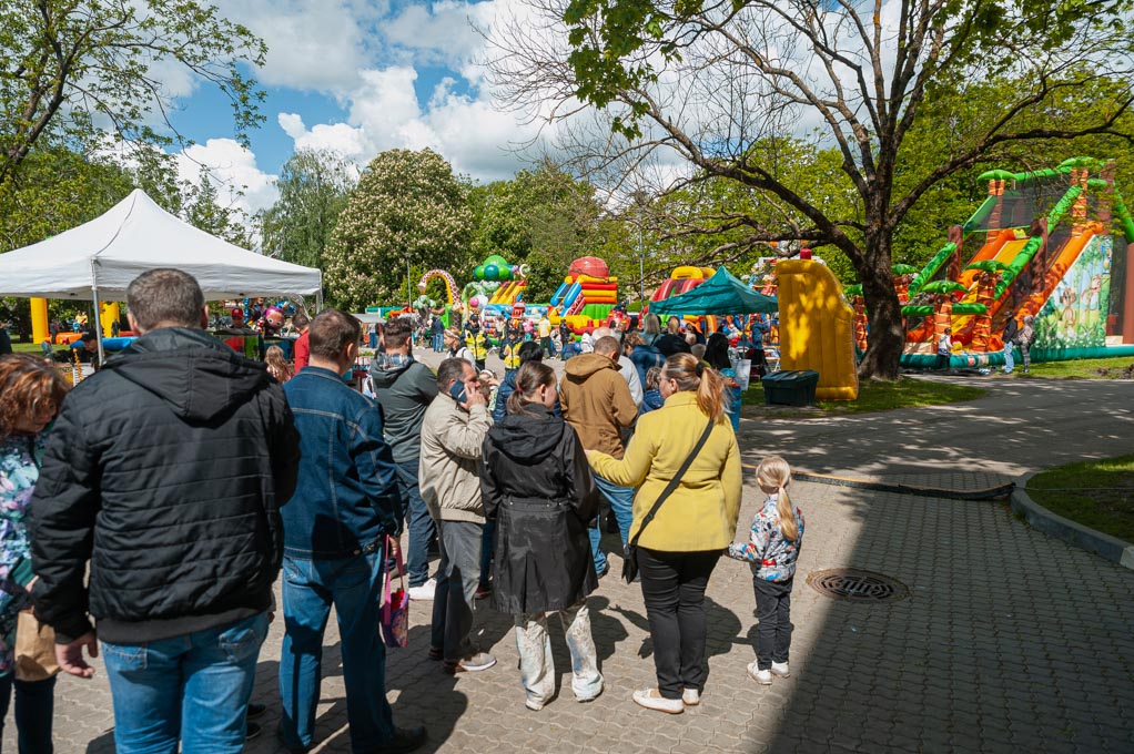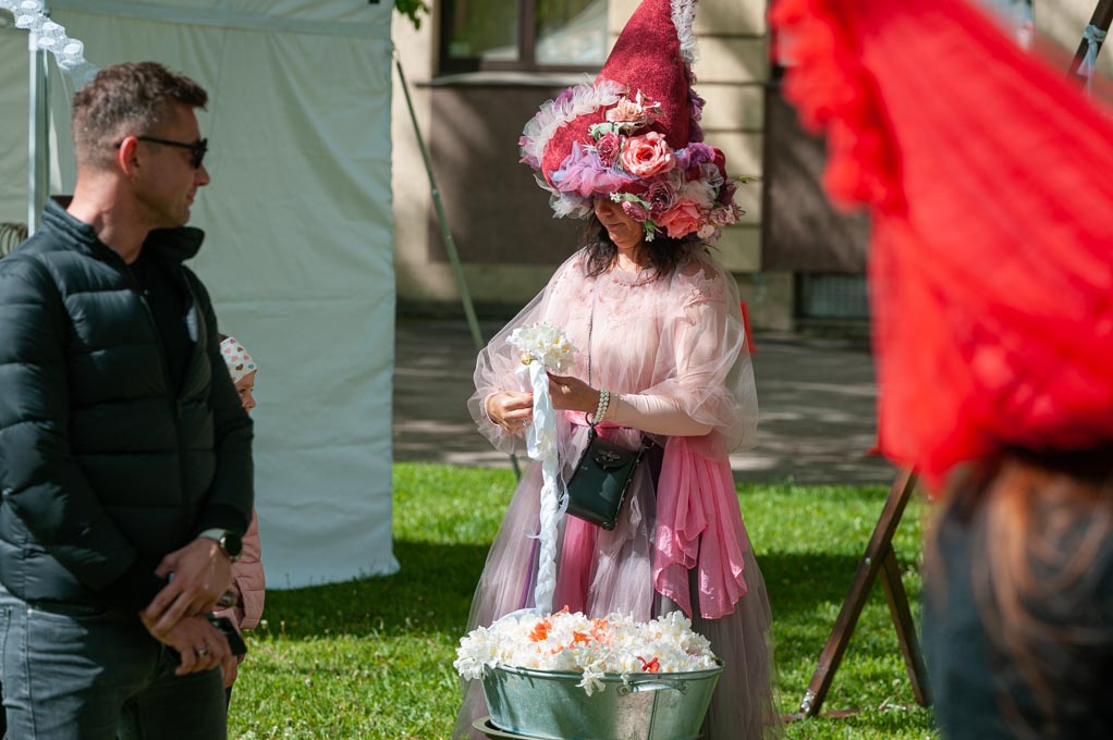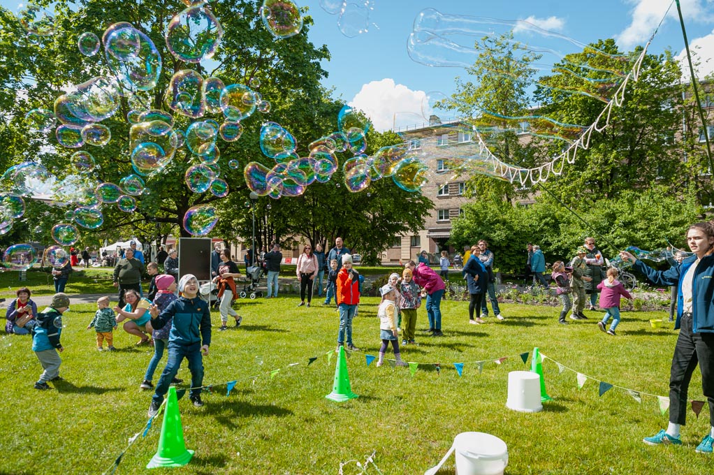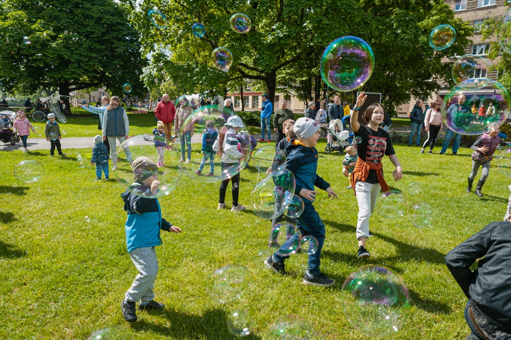 Hercoga Jēkaba laukumā pulcē dažādas aktivitātes ģimenēm pasākumā “Sajūtu parks”. Gaisā tiek laisti lielizmēra burbuļi, zīmēti apsveikumi Jelgavai dzimšanas dienā, par piemiņu no svētkiem, apmeklētāji sevi iemūžina īpašā ceriņiem rotātā foto stūrī.