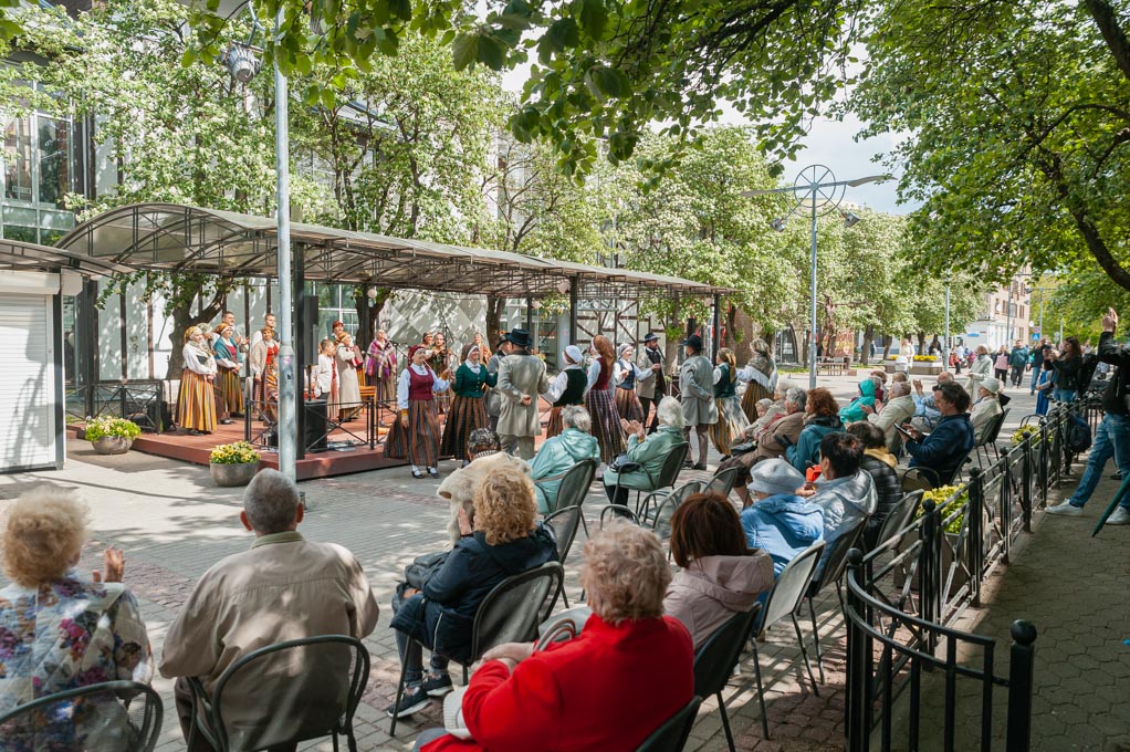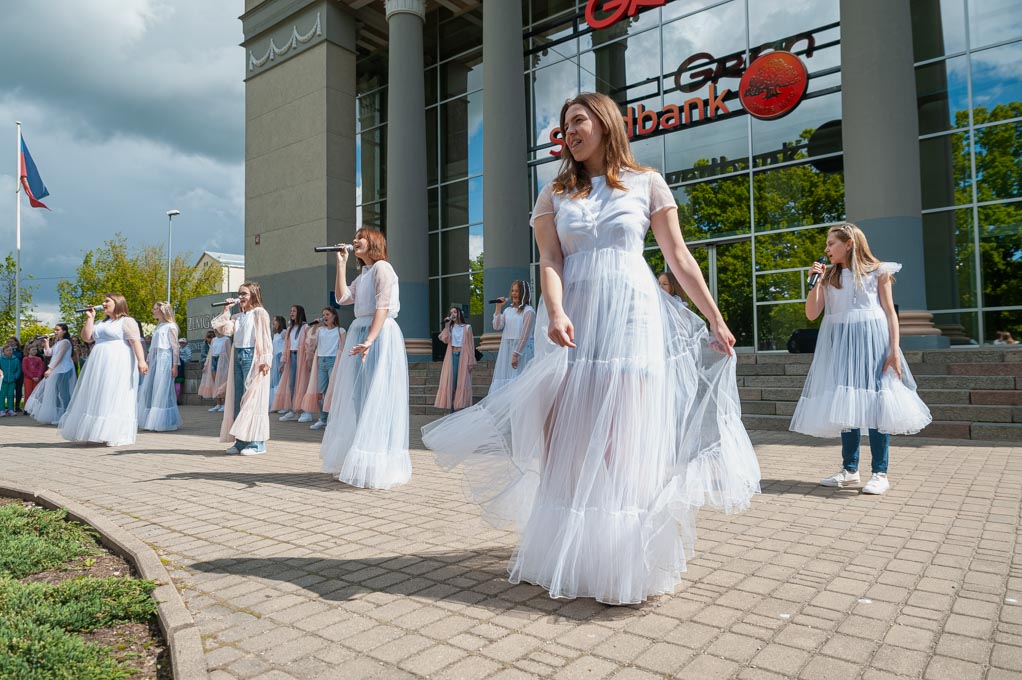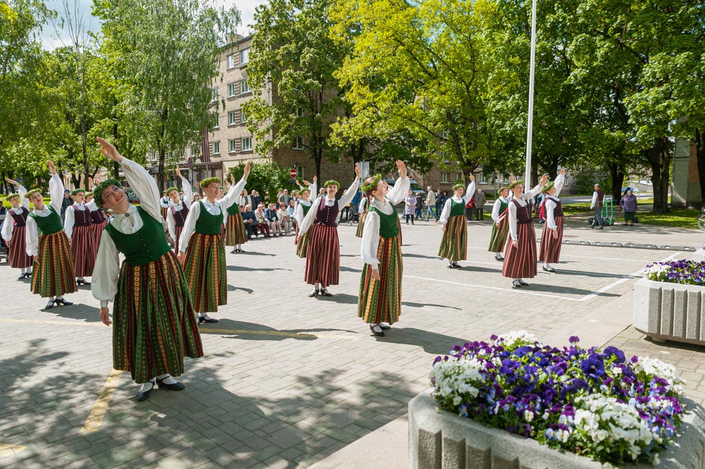 Rīta pusē jelgavniekus pie kultūras nama, Driksas ielā un Pasta ielā modināja vokālie ansambļi “Vīzija”, “Guns”, Tirkīzkora sieviešu ansamblis, folkloras kopa “Dimzēns”, deju kolektīvs “Vēja zirdziņš”, “Ieviņa”, tautas deju ansambļi “Lielupe”, “Diždancis”, “Ritums”, “Laipa” un citi.