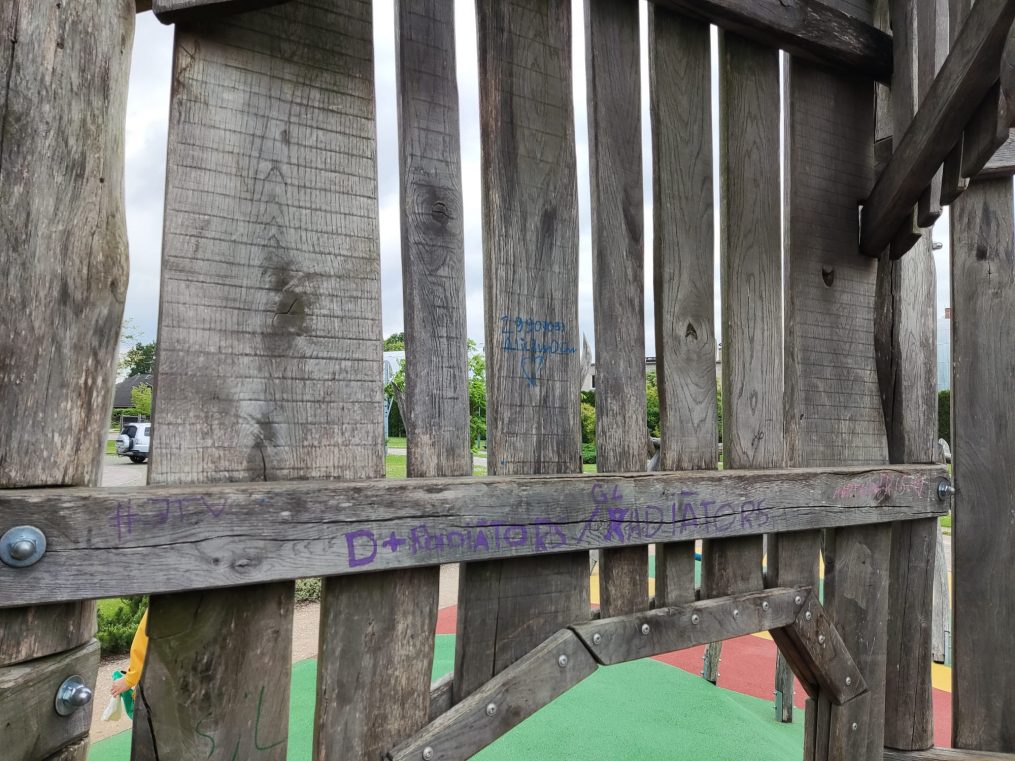 Vasara ir laiks, kad pieaug vandālisma gadījumu skaits rotaļu laukumos – iekārtas tiek apzīmētas, saskrāpētas un citādi bojātas. Jelgavas pašvaldības apsaimniekotajos rotaļu laukumos ir uzstādītas videonovērošanas kameras. Šogad, pateicoties video ierakstu analīzei, pašvaldības policija jau ir identificējusi vairākus jauniešus, kas apzīmējuši rotaļu iekārtas, informē pašvaldības iestāde “Pilsētsaimniecība”.