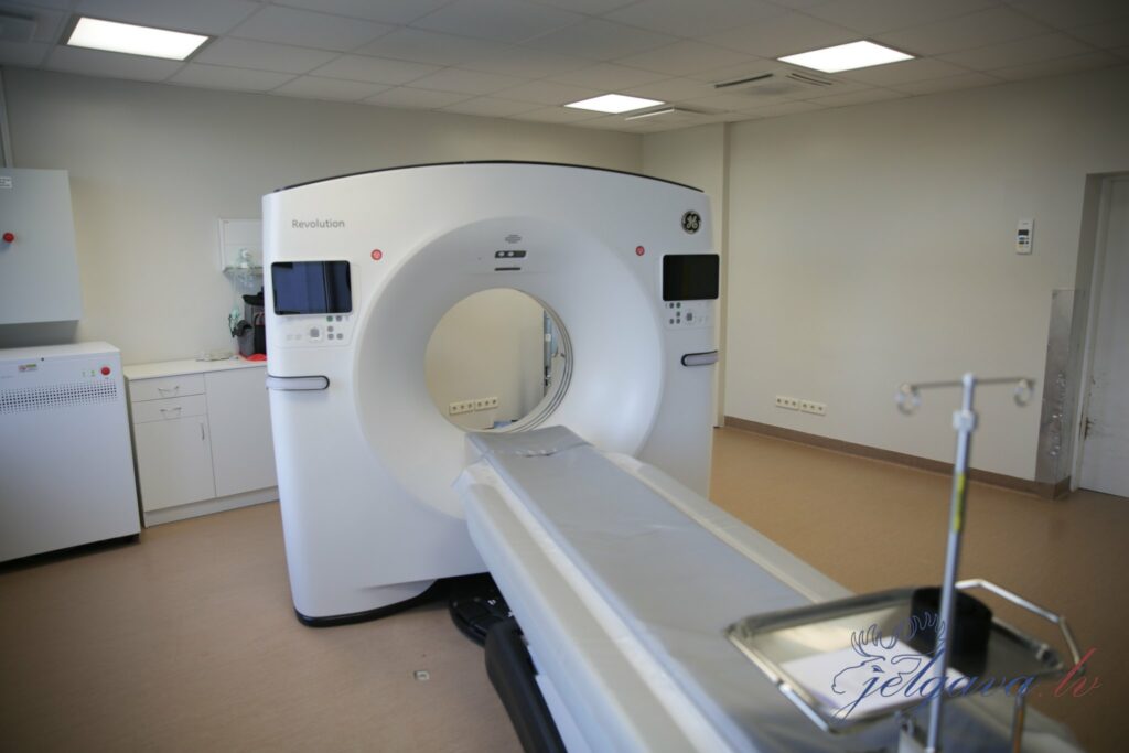 Diagnostiskās radioloģijas nodaļas vadītājs Edmunds Kalniņš stāsta, ka iepriekšējais datortomogrāfs slimnīcā labi kalpojis astoņus gadus un ir morāli novecojis. “Šobrīd savā īpašumā esam ieguvuši jaunākās paaudzes 64 slāņu datortomogrāfu “GE”, kas plaša profila reģionālajai slimnīcai ir optimāls variants. Uz tā var veikt visdažādākos izmeklējumus – galvas, muguras, plaušu, vēdera dobuma, mazā iegurņa, asinsvadu un citus. Atšķirībā no iepriekšējā datortomogrāfa, šis ir jaudīgāks un daudz ātrāk apstrādā informāciju, līdz ar to vairs nebūs negaidītu pārtraukumu tikai tāpēc, ka aparāts informācijas apjoma dēļ ir pārkarsis un tam jāatdziest, ar jauno aparātu varēsim veikt dažādas izmeklējumu rekonstrukcijas, lai iegūtu papildu informāciju. Piemēram, vizualizēt jebkura veida audus, lai detalizēti redzētu asinsvadu izmeklējumus, vai nav izveidojies trombs,” stāsta E.Kalniņš, papildinot, ka jaunā aparāta papildu ieguvums ir arī automatizēta pozicionēšanas sistēma – ar 3D kameru aparāts pats, vadoties pēc ievadītās informācijas, pielāgo cilvēka pozīciju, lai veiktu konkrētās ķermeņa daļas izmeklējumu. Jāpiebilst, ka Baltijas valstīs ir tikai divi šādi aparāti – Paula Stradiņa Klīniskās universitātes slimnīcā un tagad arī Jelgavas slimnīcā.