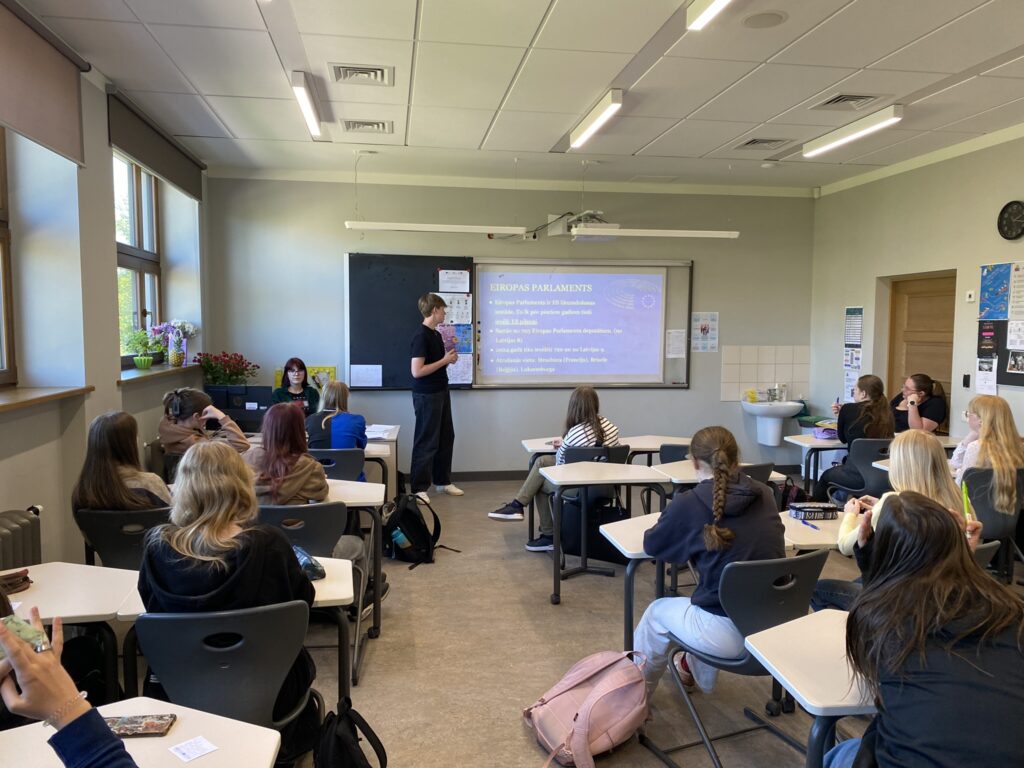Visas nedēļas garumā, Eiropas kluba dalībnieki – Dens Zandbergs, Emīls Bergs, Agate Misule, Aleksa Ignatenko, Elīna Līcīte, Rihards Ušvils, Ričards Linabergs un Megija Kārkliņa vadīja izglītojošas mācību stundas 7. un 8. klasēm, kurās iepazīstināja skolēnus ar Eiropas Savienību, tās galvenajām institūcijām, kā arī gaidāmajām Eiropas Parlamenta vēlēšanām un caur interaktīvām aktivitātēm pārbaudīja skolēnu zināšanas Eiropas valodās. Eiropas nedēļas ietvaros skolēni tika aicināti arī piedalīties Eiropas eksāmenā, kuru ik gadu rīko Eiropas Savienības māja.