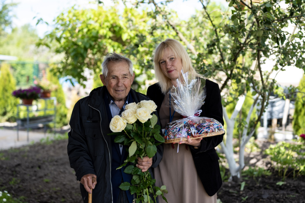 Pašvaldības vārdā simtgadnieku sveica Jelgavas Sociālo lietu pārvaldes sociālā darbiniece Iveta Hofmane, dāvinot jubilāram ziedus, saldumu grozu un pašvaldības pabalstu 150 eiro vērtībā veselības uzlabošanai personām, kuras sasniegušas simts vai vairāk gadu.