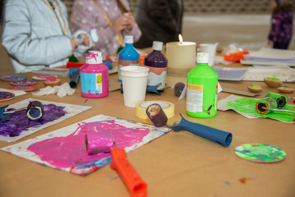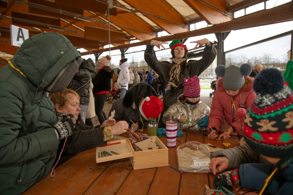 Bērnus uz aktīvu darbošanos aicināja arī radošās darbnīcas. Dažās bija iespēja sasildīties, piedaloties sportiskās aktivitātēs, bet citās – darināt skaistus Ziemassvētku rotājumus.