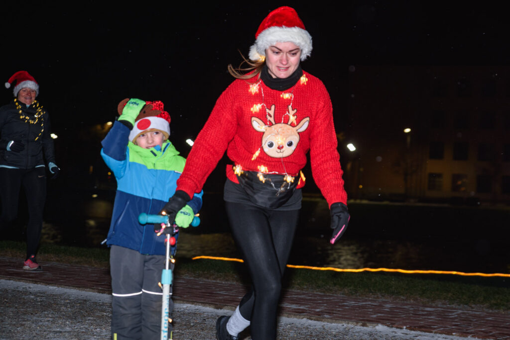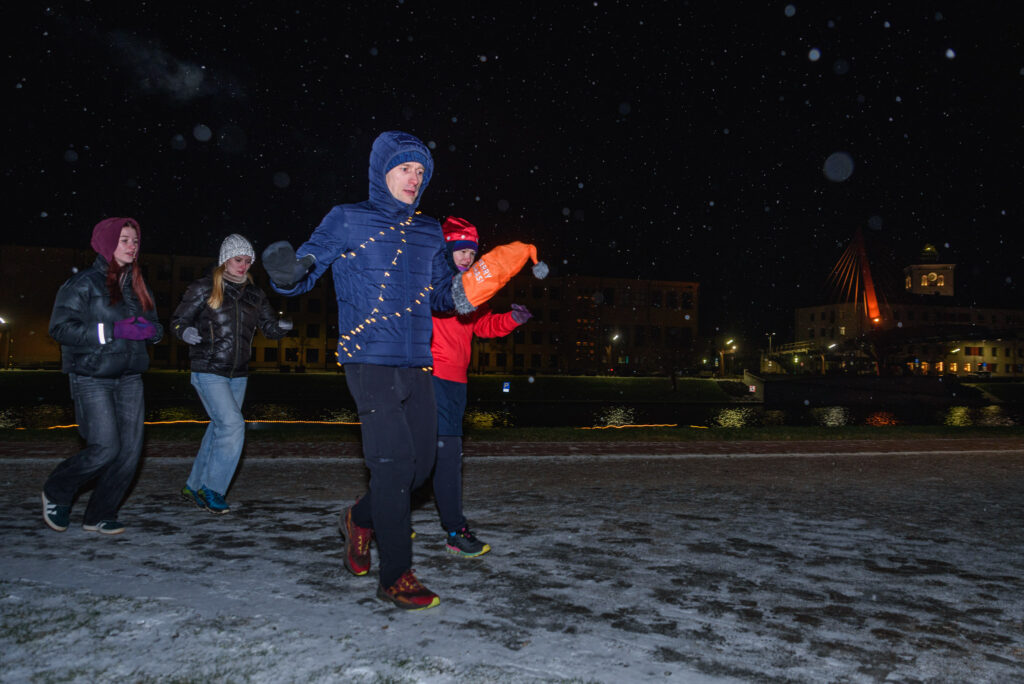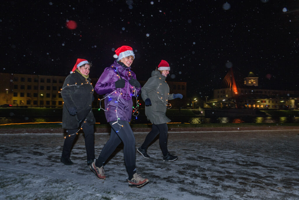 Jelgavas Sporta servisa centrs informē, ka uz Vecgada labsirdības skrējienu Pasta salā bija ieradušies aptuveni simts dalībnieki, turklāt daudzi skrējēji bija piedomājuši pie tērpa un likuši galvā rūķu cepures vai rotājušies ar lampiņām.