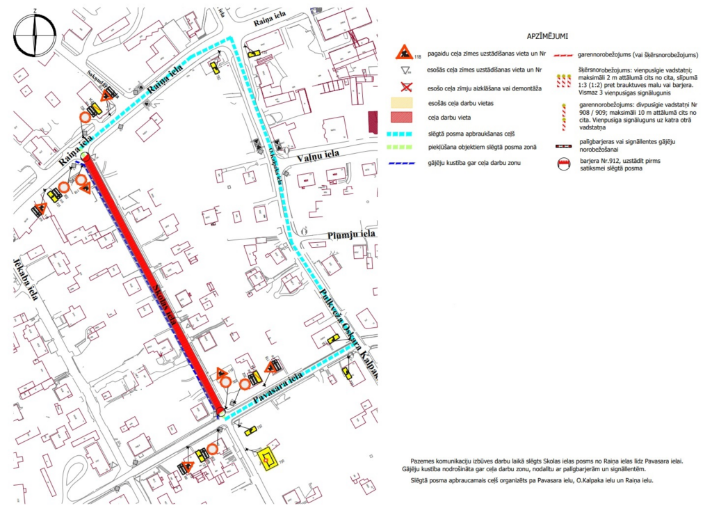 Iedzīvotājiem piekļuve mājokļiem slēgtajā ielas posmā tiek nodrošināta. Transportlīdzekļu vadītāji aicināti izmantot apbraucamos ceļus pa Pavasara, Pulkveža Oskara Kalpaka un Raiņa ielu.