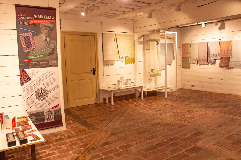 Jelgavas Vecpilsētas mājā izstādes apmeklētāji var apskatīt biedrības “Radošā apvienība Piektā Māja” mākslinieku digitalizētos J. Madernieka un J. Straumes rakstus un porcelāna apdruku dekolu tehnikā, kā arī Gulbenes novada kultūras centra TLMS “Sagša” meistaru jaunrades darbus – linu galda dvieļus skalu aušanas tehnikā, šalles pusnīšu tehnikā un rakstainus cimdus ar abu mākslinieku ornamentu motīviem.