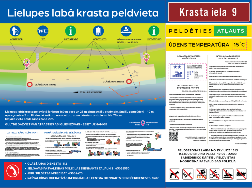Katrā peldvietā izvietoti divi stendi, kuros precizēta informatīvā shēma un cita informācija saskaņā ar 2017. gada 28. novembra Ministru kabineta noteikumiem Nr. 692 “Peldvietas izveidošanas, uzturēšanas un ūdens kvalitātes pārvaldības kārtība”.