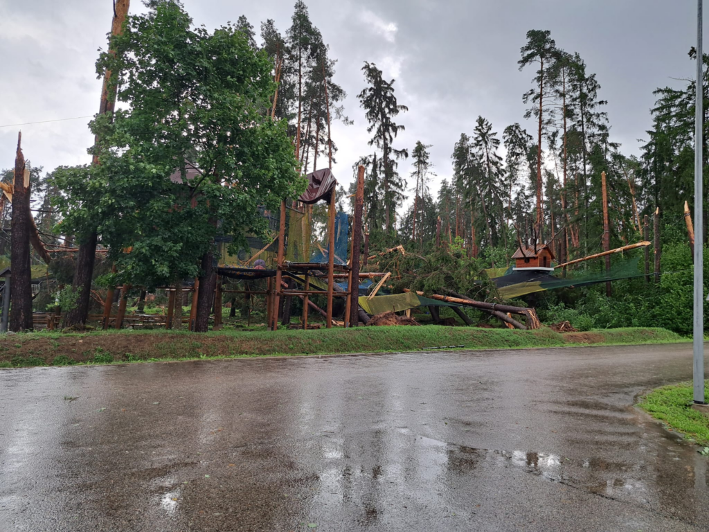 Jau rakstīts, ka negaisa laikā dabas parku pirmdien, 7.augustā, sapostīja spēcīgais vējš, sagāžot kokus, bojājot infrastruktūru, tostarp mazos rūķu namiņus, koka skulptūras. Visi cilvēki, tostarp darbinieki, kuri atradās parka teritorijā, veiksmīgi no tā izkļuva un cietušo neebija.