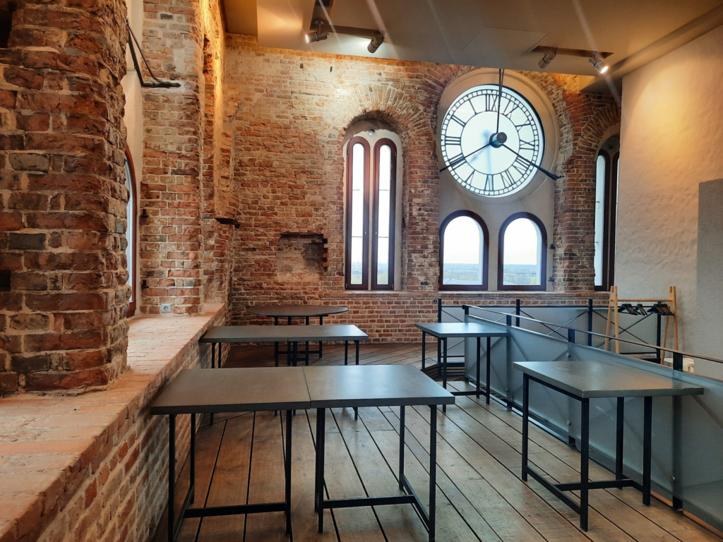 Nomas telpas atrodas kultūrvēsturiskajā piemineklī Jelgavas Svētās Trīsvienības baznīcas tornī, kas ir viens no apmeklētākajiem tūrisma objektiem pilsētā. Virtuves telpu platība ir 59,6 kvadrātmetri, tā atrodas torņa 6. stāvā, savukārt viesu zāles telpas atrodas 8. stāvā ar kopējo platību 63,1 kvadrātmetrs. Viesu zāli ar virtuvi savieno kravas lifts trauku un gatavo ēdienu piegādei.