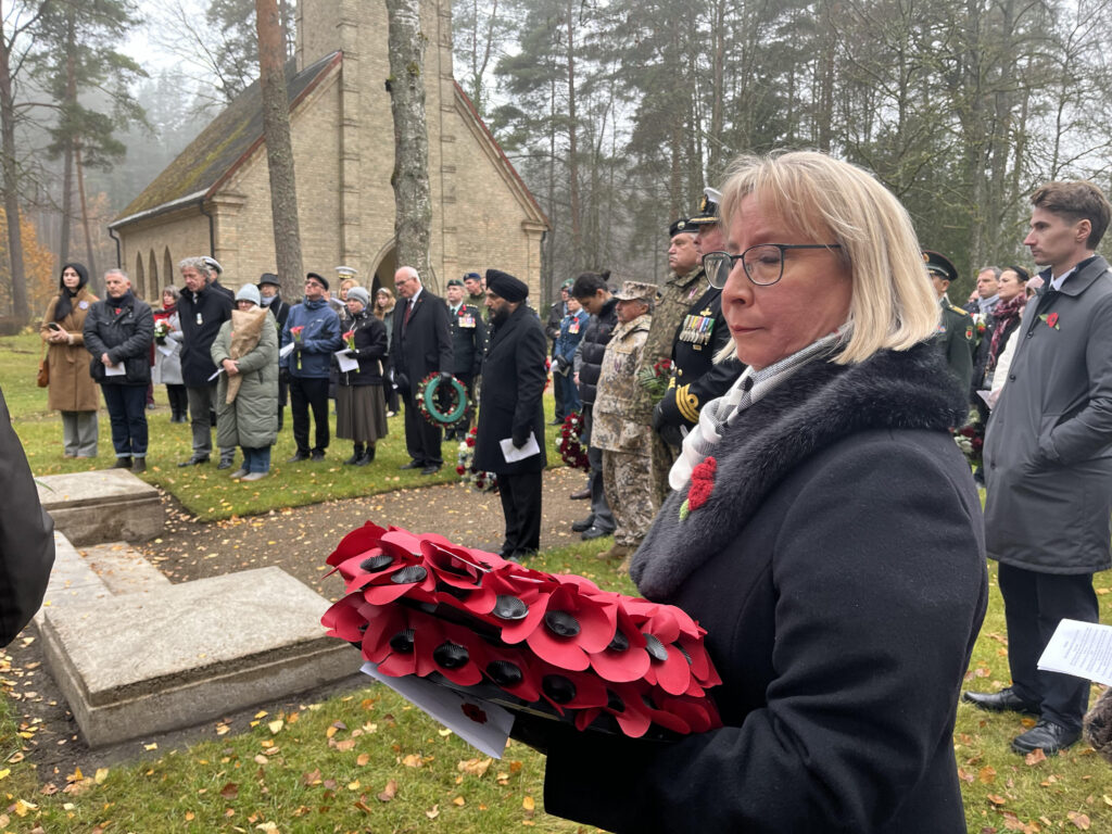 Pieminot visos karos bojāgājušos karavīrus un civiliedzīvotājus sestdien, 8. novembrī, Meža kapos pie 36 Pirmajā Pasaules karā bojāgājušo britu karavīru apbedījuma notika tradicionālais Sarkanās magones piemiņas brīdis, ko rīko Lielbritānijas vēstniecība. Lūgšanā īpaši tika pieminēti bojāgājušie Ukrainas karavīri un civiliedzīvotāji. Piemiņas brīdī piedalījās Lielbritānijas, Ukrainas, ASV, Ķīnas, Polijas, Lietuvas, Zviedrijas, Turcijas un citu valstu militārie un diplomātu pārstāvji Latvijā, kā arī Nacionālo Bruņoto spēku un Jelgavas valsts pilsētas pašvaldības vadības pārstāvji.