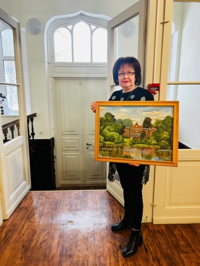 Sveicot ar paveikto kārtējo posmu ēkas restaurācijā, D. Reinika skolai dāvināja mākslinieka Ēvalda Ābeles gleznotu darbu ar Mežmuižas pili.