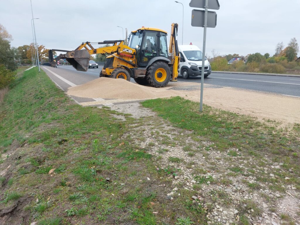 Lai atbrīvotu brauktuves no izbirušajiem graudiem, organizēta Miera ielas, Zemeņu ielas un Romas ielas asfaltēto brauktuvju tīrīšana. Graudu kaudze Miera ielā tiks nostumta ielas nomales zaļajā zonā, bet pārējie graudi tiek savākti mehanizēti ar speciālo ielu tīrīšanas transportu.