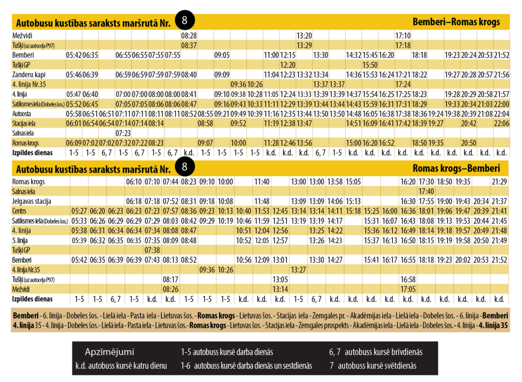 7. maršrutā Meiju ceļš–Kārniņi un 8. maršrutā Romas krogs–Bemberi pēc grozījumiem nemainās izpildīto reisu skaits un nobraukums, tas saglabājas iepriekšējā apmērā.