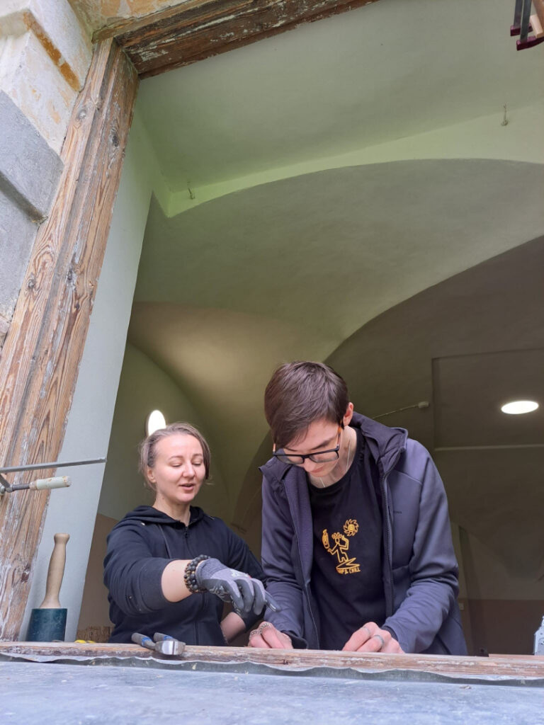 Restaurācijas darbus veica un meistarklases vadīja restauratore Agrita Reinvalde restauratores-vecmeistares Baibas Leitlantes virsvadībā.
