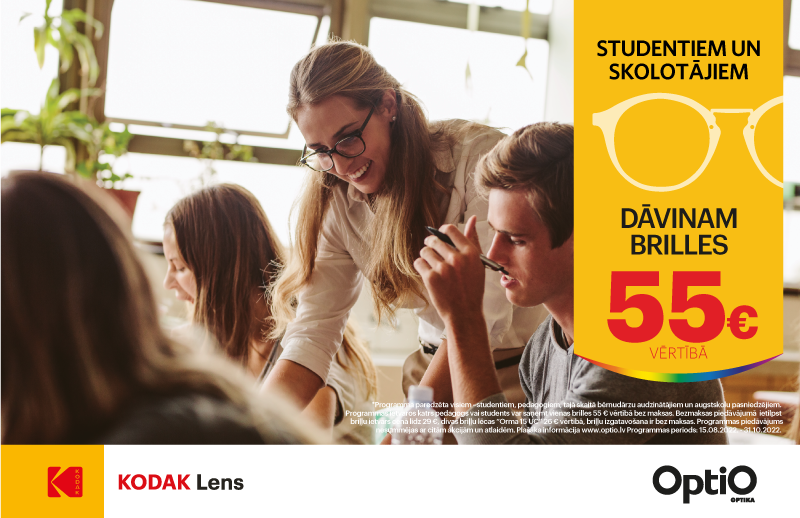 Optikas veikalu tīkls “OptiO” aicina studentus un pedagogus saņemt brilles 55 eiro vērtībā bez maksas līdz 31.oktobrim, aģentūru LETA informēja “OptiO” pārstāvji.