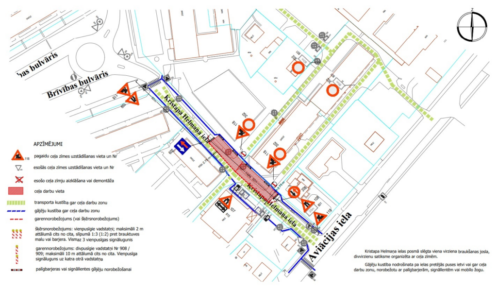 Iedzīvotāji aicināti ievērot saskaņoto satiksmes organizācijas shēmu un izvietotās ceļa zīmes.