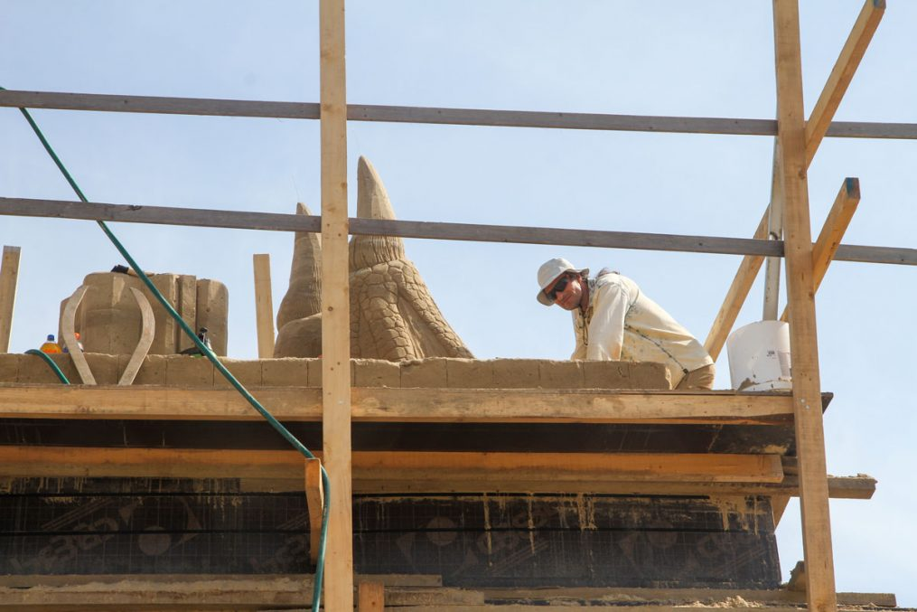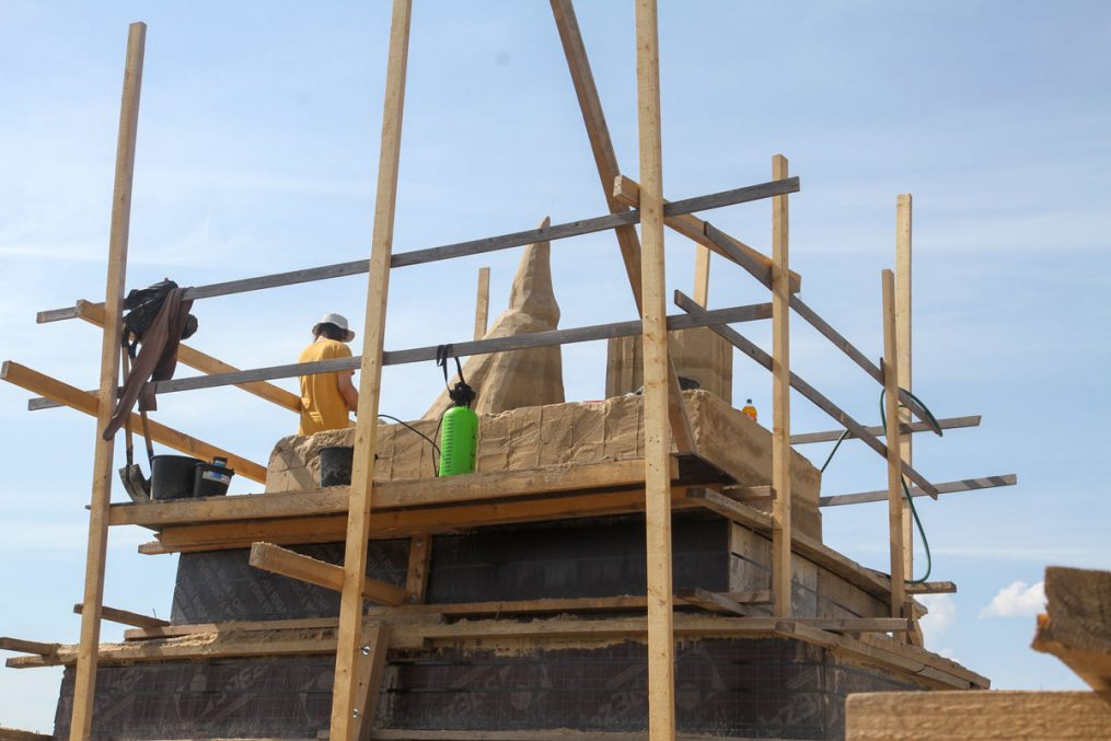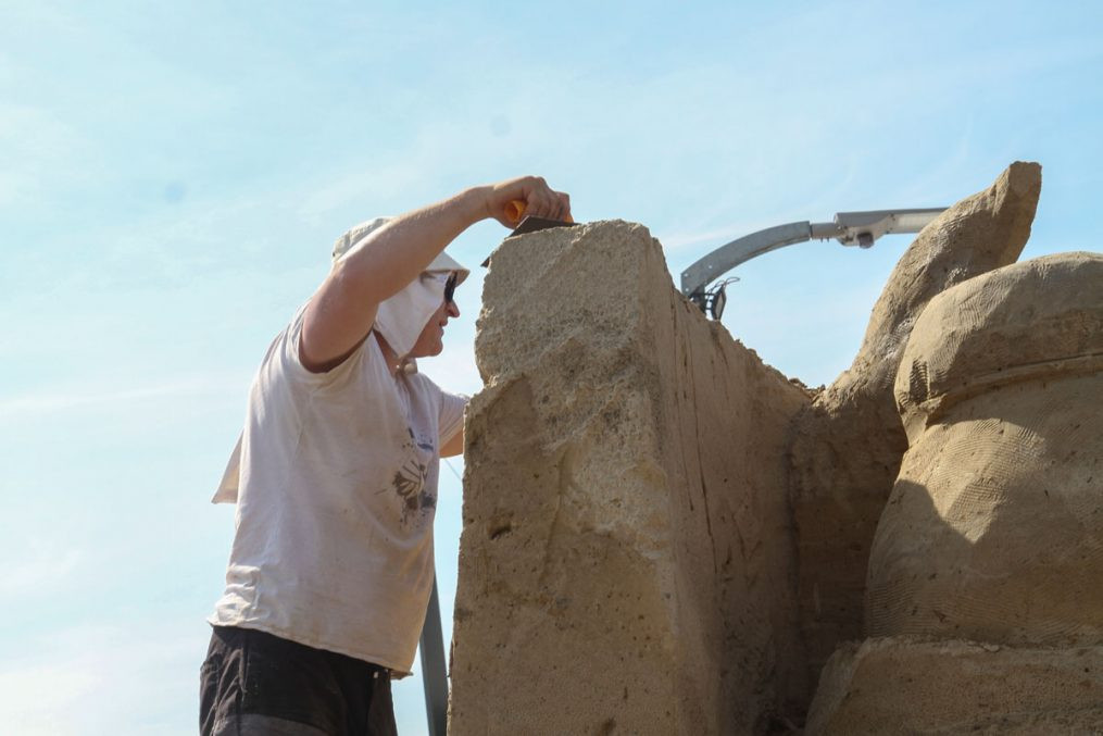 Smilšu skulptūru parka vērienīgākais mākslas darbs jau tradicionāli būs demo skulptūra, kas šogad taps no 500 tonnām smilšu materiāla, būs 7,5 metrus augsta un 12 metrus plata. Lai realizētu vērienīgo ieceri, darbu pie skulptūras jau savlaicīgi uzsākuši pasaulē titulētie tēlnieki, ikgadējie festivāla dalībnieki Jelgavā – Kārlis un Maija Īles.