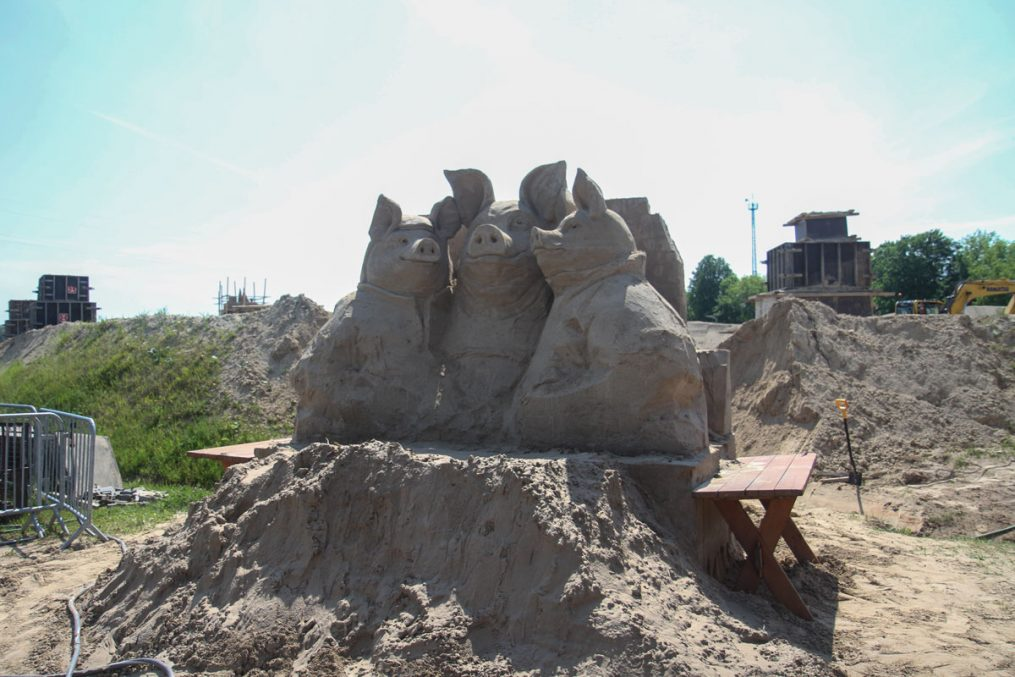 Savukārt foto skulptūrā smilšu parkā atdzims iemīļotie pasaku tēli – trīs siventiņi. Ar šo varoņu stāstu apmeklētājus iepazīstinās lietuviešu tēlnieks Tautvils Poviļonis. Kā norāda autors – trīs mazi siventiņi, kas tagad kļuvuši par rukšiem, ir uzvarējuši vilku un dzīvo labi pārtikuši. Brāļu Grimmu pasaku varoņi ir pierādījuši, ka ar gudrību un izturību var pārvarēt grūtības un gūt panākumus. Tādējādi šī skulptūra atspoguļos iepriekšējās pasakas dzīves attīstību un pārmaiņas no “siventiņiem” līdz “cūkām”.