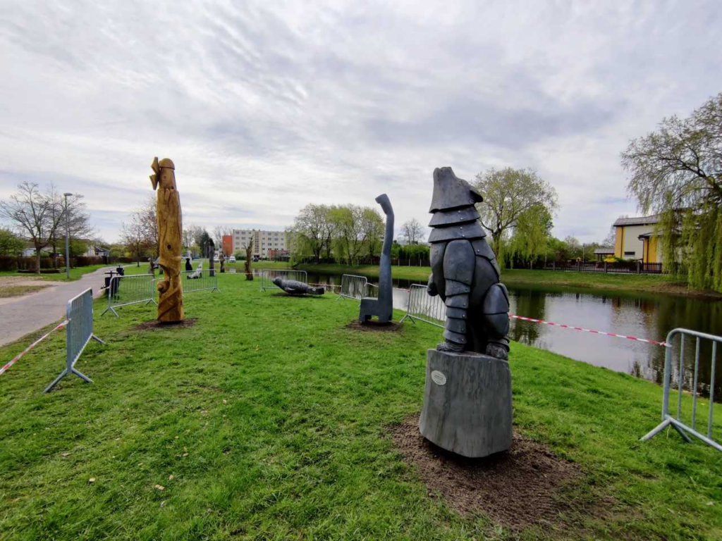 Pie Zvaigžņu dīķa izvietotas jaunas koka skulptūras