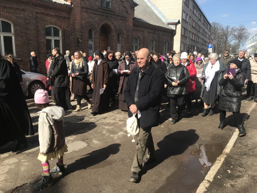 Krusta ceļa pārgājiens, kurā bija 12 pieturas, sākās Latvijas evanģeliski luteriskās baznīcas Sv. Annas prokatedrālē un noslēdzās Romas katoļu Sv. Jaunavas katedrālē. Tajā piedalījās vairāk nekā divsimt cilvēku, kā arī katoļu un luterāņu garīdznieki.