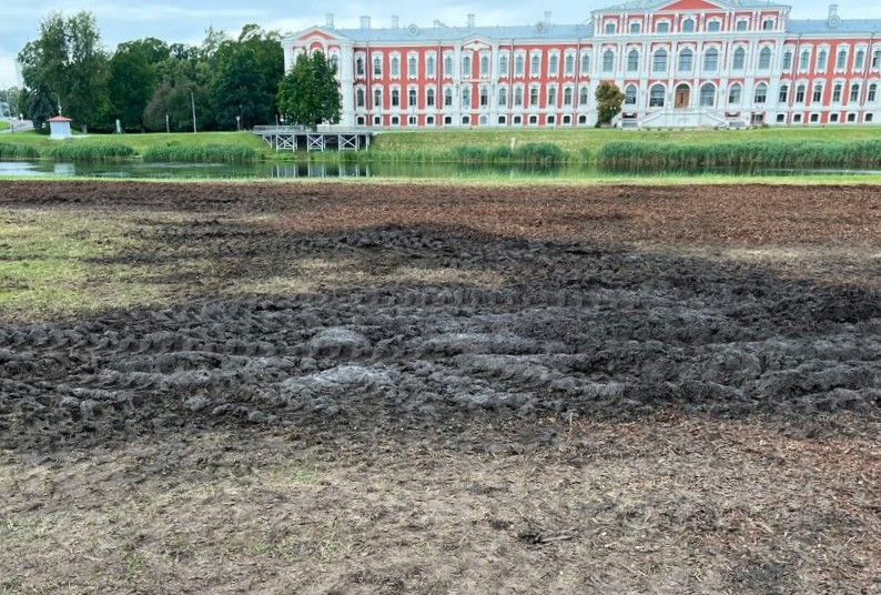Kā skaidro pašvaldībā, ņemot vērā nelabvēlīgos laikapstākļus, lielo apmeklētāju skaitu un to, ka tehniskie darbi tika veikti ar smago tehniku, būtiski cieta pļavas zāliens.