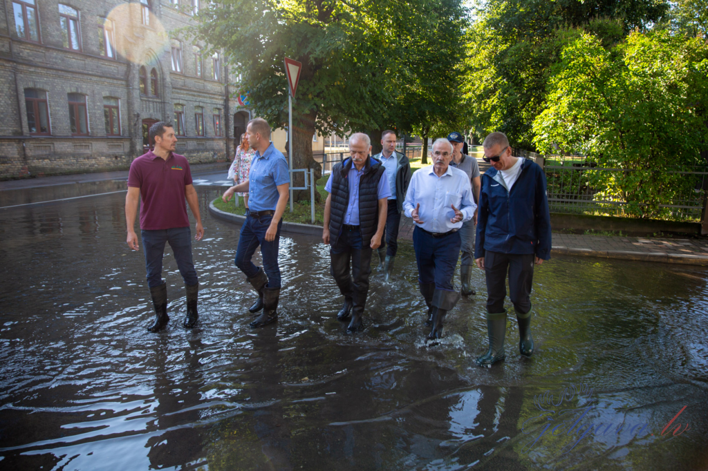 “Redzētais apliecina, ka pilsēta no spēcīgajām lietavām ir ļoti cietusi, un, manuprāt, Jelgavas pašvaldība šobrīd dara visu iespējamo, kas tās spēkos, lai novērstu plūdu sekas. Reālos zaudējumus, protams, pašvaldība varēs aplēst tikai pēc kāda laika, taču, tiklīdz tie būs zināmi, sagaidu ātru valdības lēmumu par to, kādā apjomā tos kompensēs valsts, un tam sekos ātra rīcība,” atzīst E.Rinkēvičs.