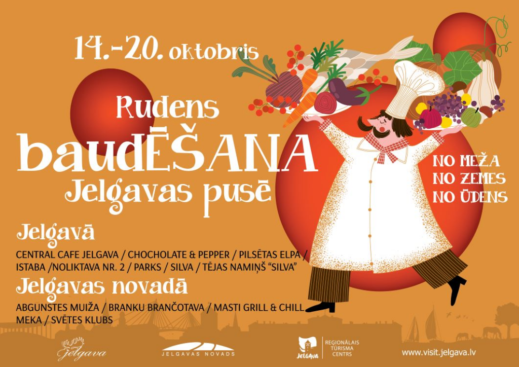 Viesus gaidīs 13 Jelgavas un Jelgavas novada restorāni, kafejnīcas, krodziņi, konditorejas un muiža. Jelgavā ar rudenīgām maltītēm viesus cienās restorāni “Chocolate & Pepper”, “Pilsētas elpa”, “Parks”, “Central cafe”, krodziņš “Istaba”, bistro “Silva” un tējas namiņš “Silva”, Noliktava Nr.2. Savukārt Jelgavas novadā viesus gaidīs restorāns “Masti Grill & Chill”, restorāns – bārs “Meka”, kafejnīca “Svētes klubs”, Branku brančotava un Abgunstes muiža.
