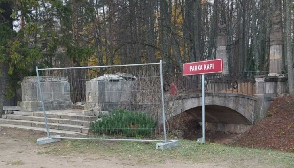Nacionālās kultūras mantojuma pārvaldes Kultūras pieminekļu konservācijas un restaurācijas programmas apstiprinātā projekta “Vārtu un ieejas tiltiņa ar dekoratīvām skulptūrām restaurācija” ietvaros šogad plānots veikt tiltiņa granīta pakāpienu līmeņošanu un pakāpienu šuvju aizpildīšanu, virsējā grants seguma demontāžu, pamata attīrīšanu, atjaunošanu un pasargāšanu no ūdens iedarbības, balstu un kolonnu nostiprināšanu ar tērauda stīpām un koka brusām, nodrošinot atdalījušos elementu stabilitāti, akmens vāzes pagaidu iebūvi koka kastē, kolonnu mūra pagaidu jumta seguma izbūvi un citus darbus.