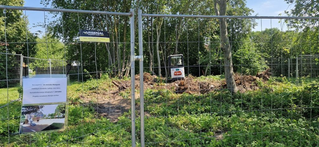 Būvdarbu vieta ir norobežota. Lūgums vecākiem pieskatīt bērnus, rūpēties par bērnu drošību, atrodoties būvdarbu zonas tuvumā, un nepieļaut bērnu iekļūšanu laukuma norobežotajā daļā!