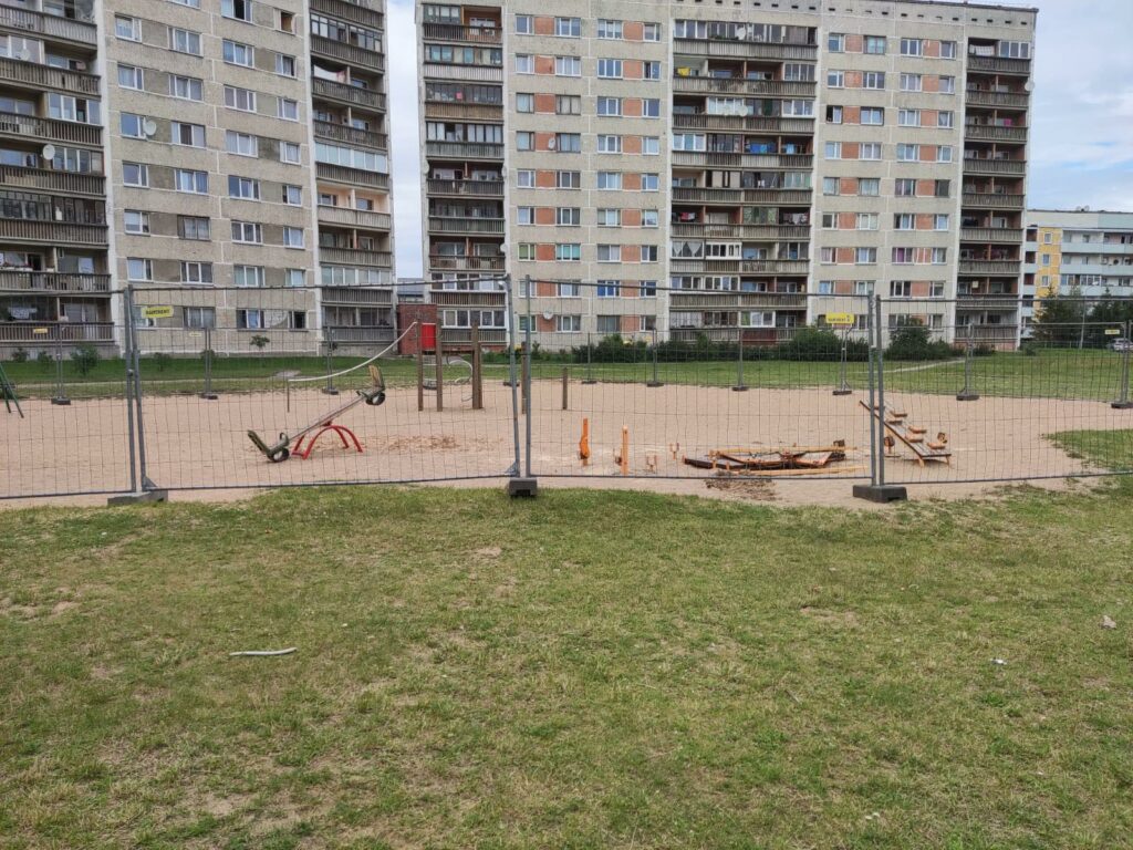 Satiksmes ielā 33 Jelgavā sākta rotaļu iekārtu demontāža, lai uzstādītu jaunas