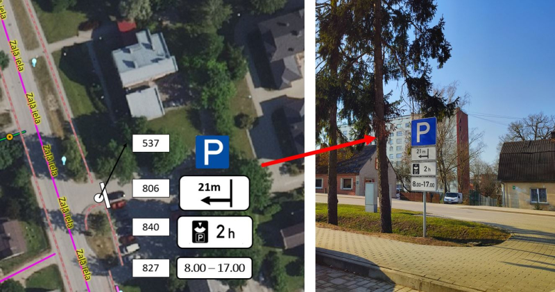 Stāvlaukumā Zaļajā ielā 27 ir uzstādītas ceļa zīmes Nr.537 “Stāvvieta” ar papildzīmēm Nr.806 “Darbības zona” ar tekstu “¬ 21 m”, Nr.840 “Stāvēšanas ilgums” ar tekstu “2 h” un Nr.827 “Darbības laiks” ar tekstu “8:00-17:00”. Savukārt Zaļajā ielā, posmā no Deglava ielas līdz Ausmas ielai, ir ierobežots atļautais braukšanas ātrums – līdz 30 km/h, uzstādītas ceļa zīmes Nr.323 “Maksimālais ātruma ierobežojums”;