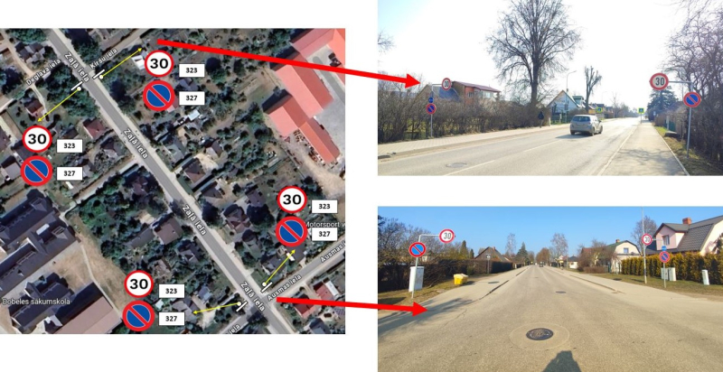 Uzstādītas arī ceļa zīmes Nr.533 “Dzīvojamā zona” un Nr.534 “Dzīvojamās zonas beigas” Dainu ielā pie Meža prospekta, Liepu ielas abos galos un Ausmas ielas abos galos.
